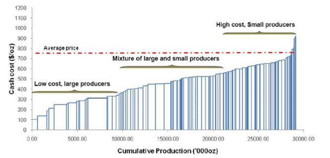In the mining industry—whether copper, gold, or coal—several firms publish the production costs of many operations and establish curves where the lowest-cost producer per ton sets “the mark,” the benchmark.